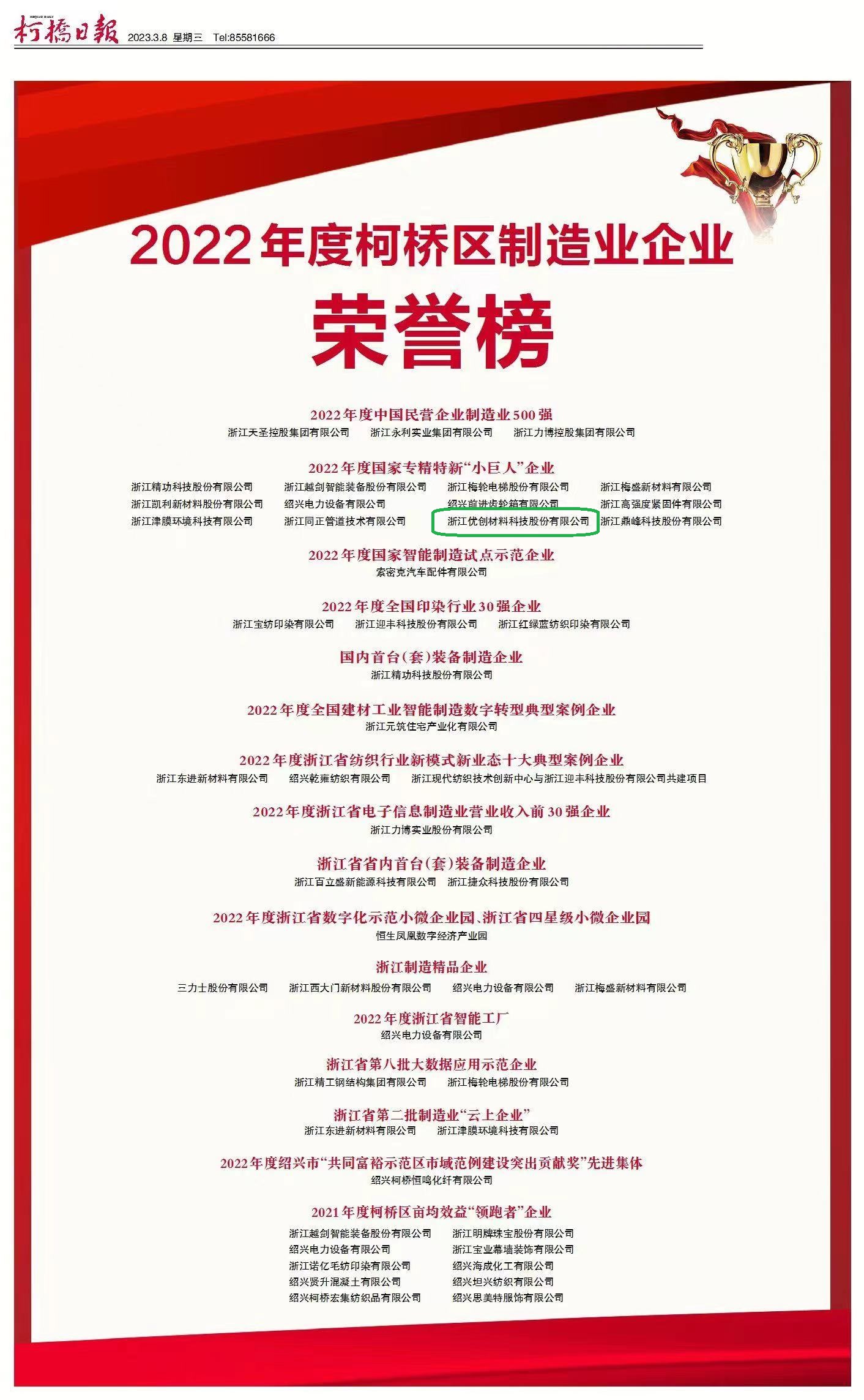 • 喜訊!浙江優(yōu)創(chuàng)材料榮獲2022國家級專精特新“小...